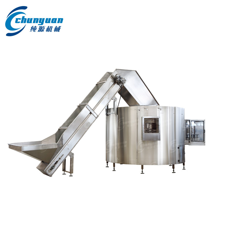 純?cè)礄C(jī)械廠家專業(yè)供應(yīng)的全自動(dòng)理瓶機(jī)可用于無(wú)序聚酯瓶的整理,將散亂無(wú)章的瓶子經(jīng)由提升機(jī)送進(jìn)理瓶機(jī)存瓶圈內(nèi),靠轉(zhuǎn)盤的推力,瓶進(jìn)入瓶格內(nèi)自行定位。瓶子通過理瓶機(jī)翻轉(zhuǎn)裝置和氣流的作用,瓶被整理成瓶口向上直立,并經(jīng)風(fēng)送式輸瓶系統(tǒng)輸出進(jìn)入下道工序。
