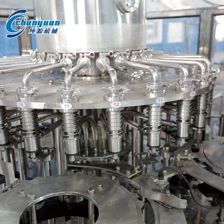 純源機(jī)械廠家生產(chǎn)制造的紅茶飲料設(shè)備采用卡瓶頸傳動技術(shù),實(shí)現(xiàn)全自動沖瓶、灌裝、封蓋等工序,自動化程度高;