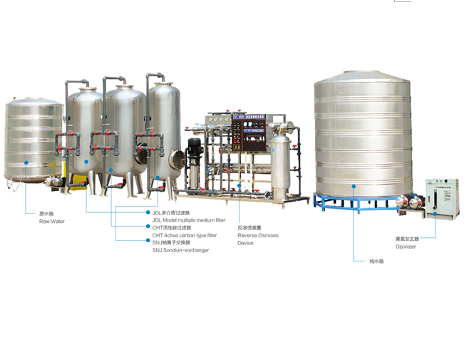 純?cè)礄C(jī)械的水處理設(shè)備制造適用于純凈水、礦泉水、飲料產(chǎn)品水及工藝水的各類水處理設(shè)備。主要包括:預(yù)處理系統(tǒng)(石英砂過(guò)濾器、活性炭過(guò)濾器、離子交換器、微孔過(guò)濾器),膜分離系統(tǒng)(中空纖維超濾、納濾器、反滲透主機(jī)),滅菌設(shè)備(紫外線設(shè)備、臭氧發(fā)生器)及鈦芯棒過(guò)濾器等。